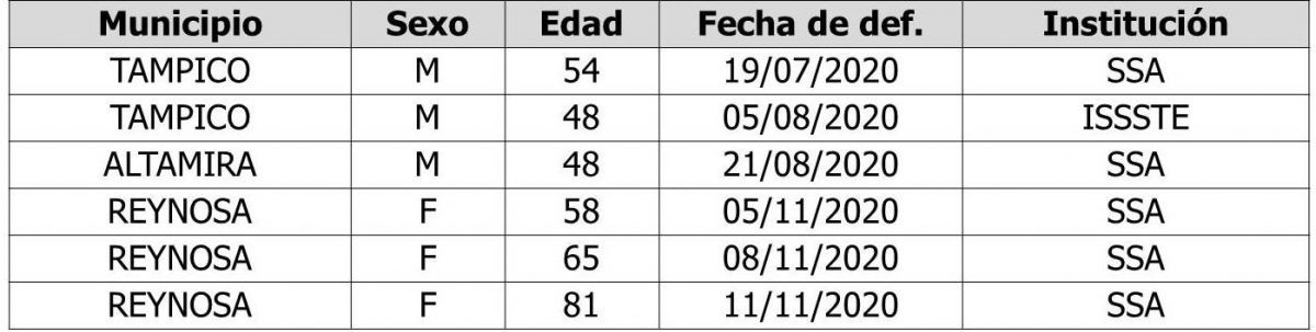 Mientras que las defunciones corresponden a: