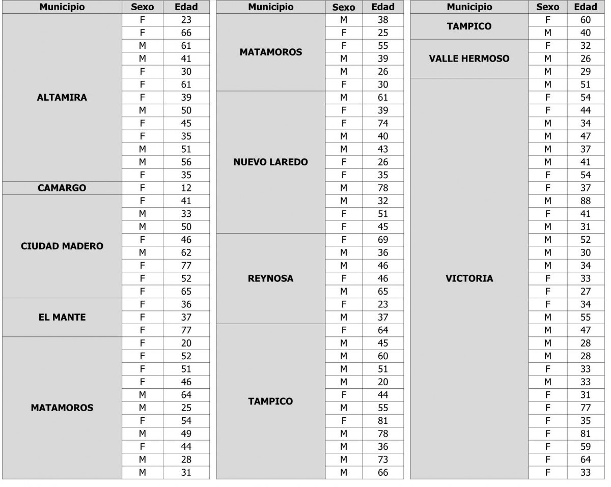 Los nuevos casos se registraron en los siguientes municipios: