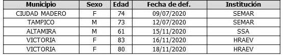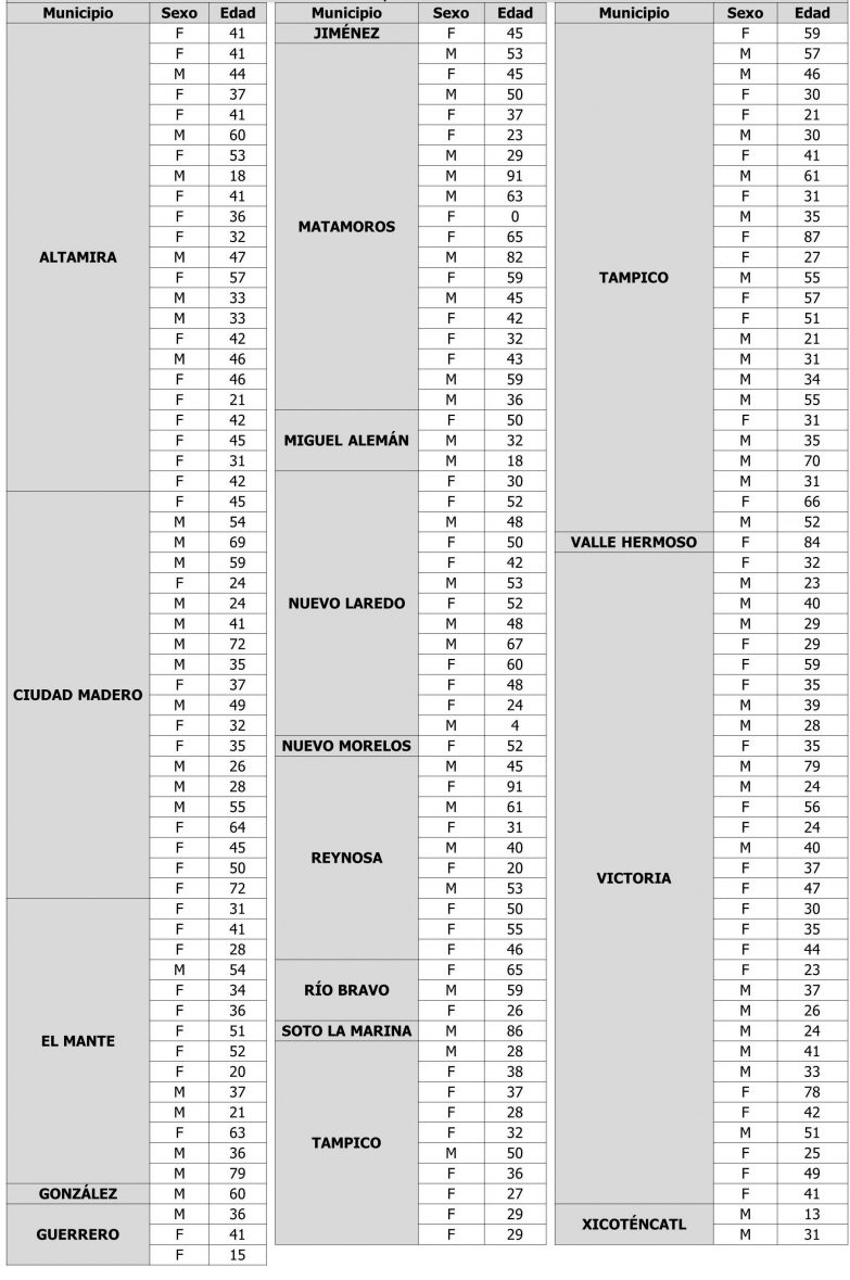 CIUDAD VICTORIA, Tamaulipas.- Durante la jornada de este sábado, Tamaulipas confirmó 181 nuevos contagios de COVID-19 y 05 fallecimientos, informó la secretaria de Salud, Gloria Molina Gamboa quien reiteró su llamado a quedarse en casa y utilizar cubrebocas en todos los espacios públicos.