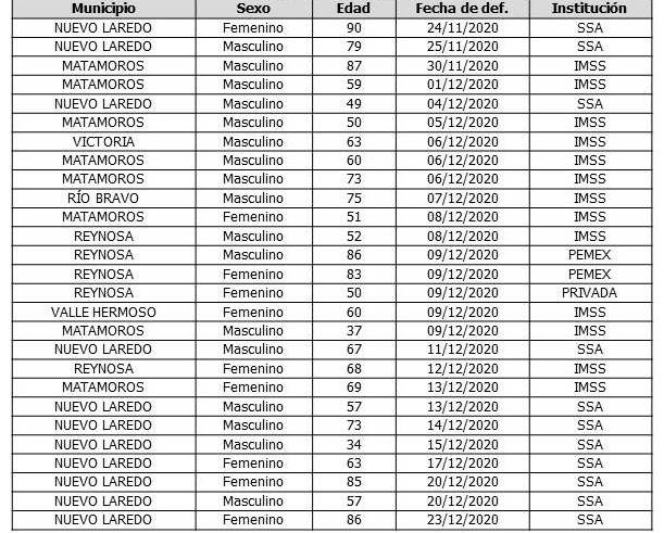 Además de 27 defunciones que corresponden a: