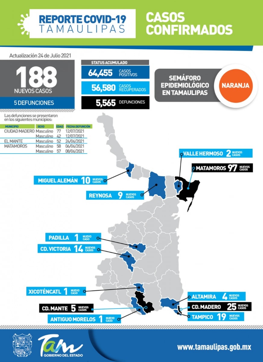 CIUDAD VICTORIA, Tamaulipas. – Para cortar la cadena de transmisión del COVID-19, disminuir casos, hospitalizaciones y fallecimientos, la secretaria de Salud de Tamaulipas, Gloria Molina Gamboa insistió en su llamado a intensificar las medidas de prevención como son: quedarse en casa el mayor tiempo posible, utilizar cubrebocas, lavarse las manos frecuentemente y respetar la sana distancia, además de mantener el control de enfermedades como obesidad, hipertensión y diabetes.