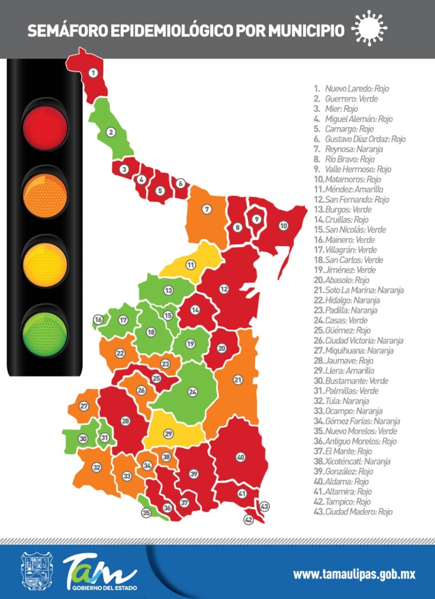 La ocupación hospitalaria en Tamaulipas para este día se presenta de la siguiente manera: 39% en los hospitales de la Secretaría de Salud, 24% en el hospital Regional de Alta Especialidad, 59% en los hospitales del IMSS y 19% de ocupación en los hospitales del ISSSTE. Con una ocupación de todo el sector del 45%.