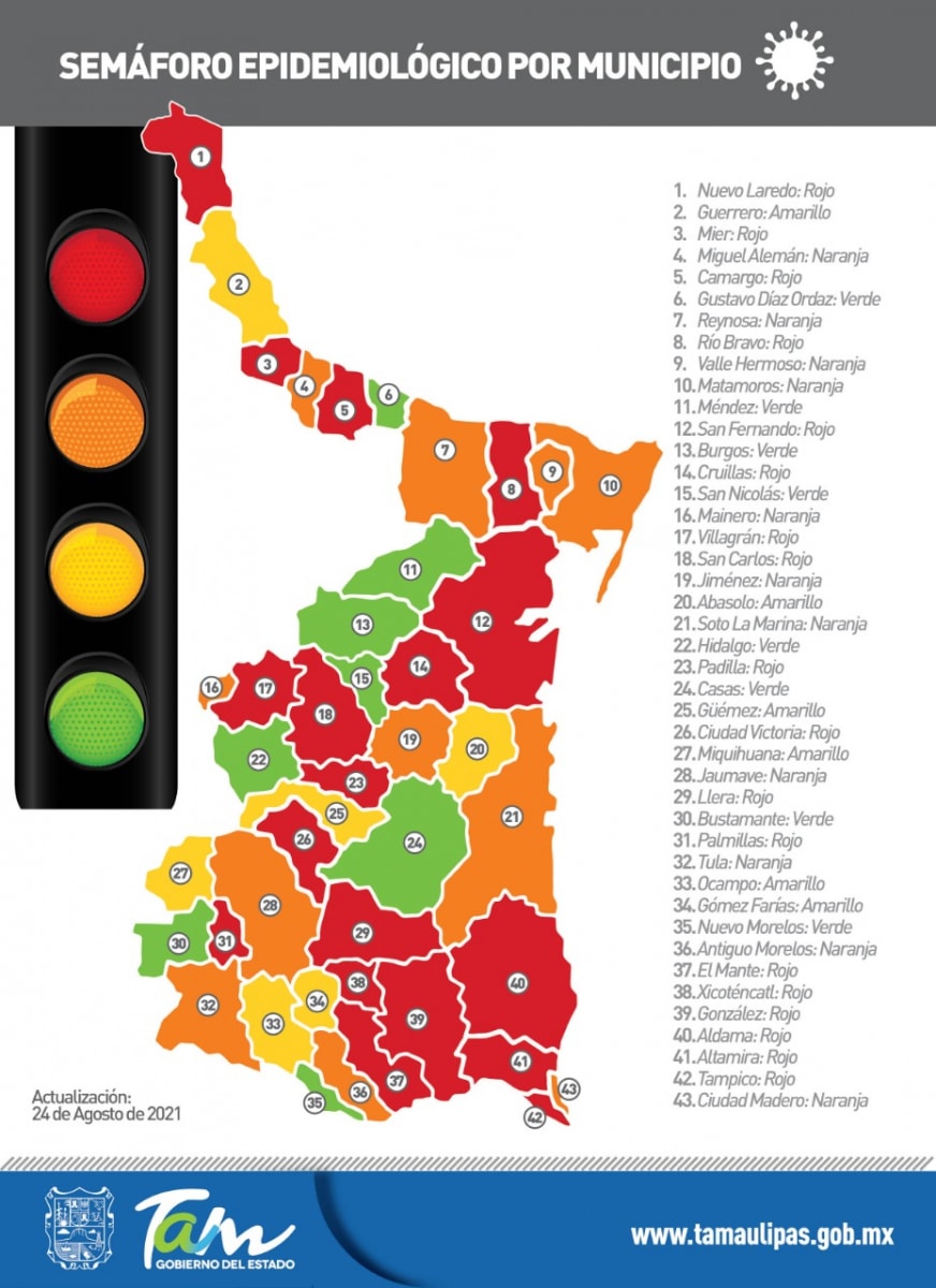 Respecto a la ocupación hospitalaria en Tamaulipas para este día se presenta de la siguiente manera: 48% en los hospitales de la Secretaría de Salud, 40% en el hospital Regional de Alta Especialidad, 57% en los hospitales del IMSS y 42% de ocupación en los hospitales del ISSSTE. Con una ocupación de todo el sector del 51%.