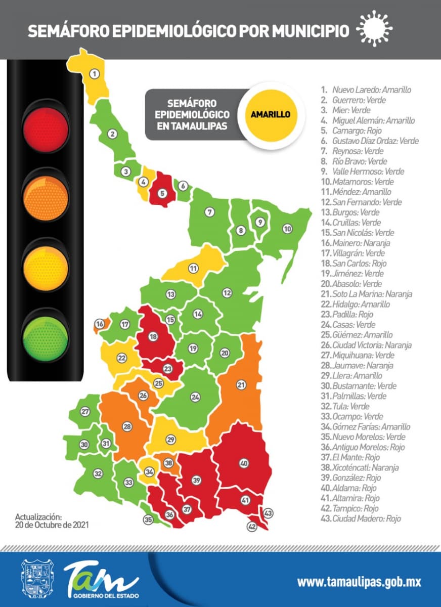 Respecto a la ocupación hospitalaria en Tamaulipas para este día se presenta de la siguiente manera: 17% en los hospitales de la Secretaría de Salud, 28% en el hospital Regional de Alta Especialidad, 39% en los hospitales del IMSS y 19% de ocupación en los hospitales del ISSSTE. Con una ocupación de todo el sector del 24%.