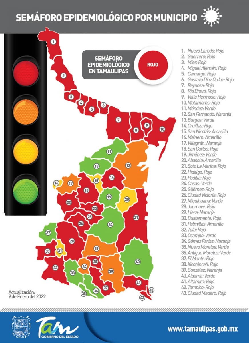 CIUDAD VICTORIA, TAMAULIPAS.- Luego de advertir que Tamaulipas se encuentra en semáforo de riesgo epidemiológico color rojo, la secretaria de Salud de Tamaulipas, Gloria Molina Gamboa urgió a la población a extremar cuidados y ser ciudadanos socialmente responsables ante la emergencia sanitaria, ya que el riesgo de contagio, complicaciones graves y fallecimientos es elevado.