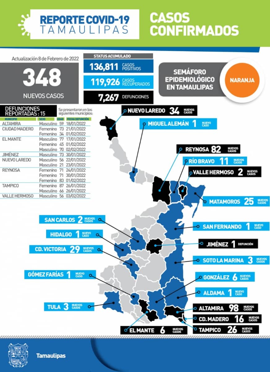 CIUDAD VICTORIA, TAMAULIPAS.- Para desacelerar los contagios de COVID-19 y evitar complicaciones graves que pudieran derivar en fallecimientos, la Secretaría de Salud de Tamaulipas exhortó a la ciudadanía a completar el esquema de vacunación ya que la variante Ómicron puede provocar reinfecciones a quienes ya han superado la enfermedad.
