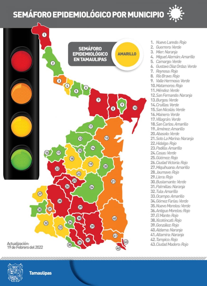 Precisó que Tamaulipas se encuentra actualmente en semáforo de riesgo epidemiológico color amarillo, de ahí la importancia de atender todas las recomendaciones que emita el gobierno del Estado para poder escalar las diferentes fases y avanzar hacia la nueva normalidad y la convivencia segura.