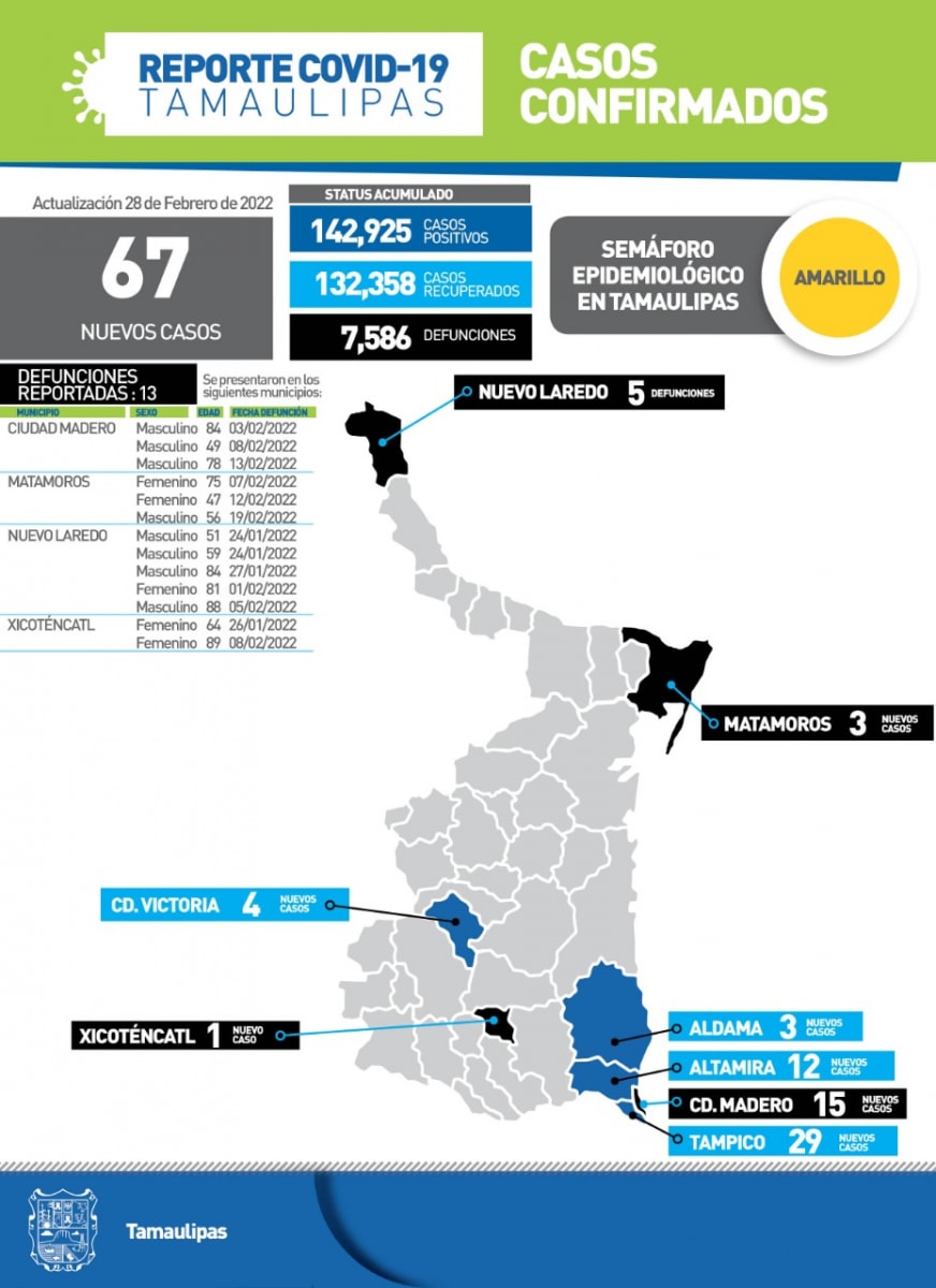 Al presentar el reporte diario, la dependencia confirmó 67 positivos y 13 fallecimientos asociados a complicaciones graves, por lo que insistió en su llamado a proteger a los más vulnerables, mantener el control de las enfermedades crónicas no transmisibles y completar el esquema de vacunación anticovid.