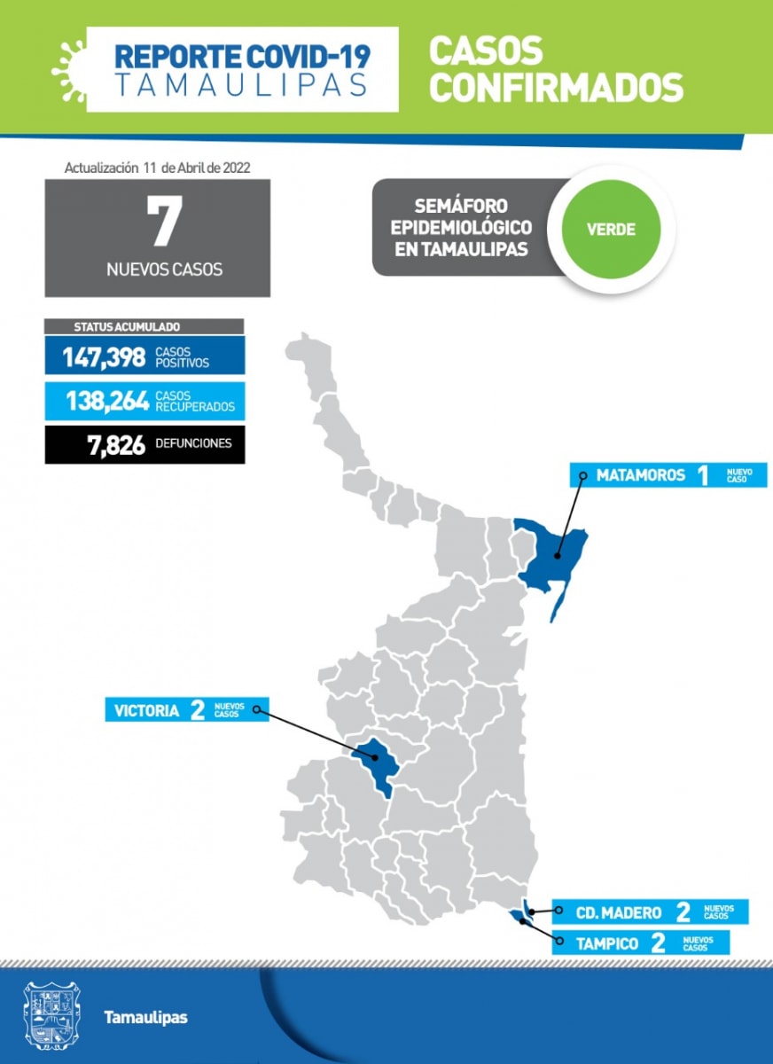 CIUDAD VICTORIA, TAMAULIPAS.- En una nueva jornada en la que no se registraron defunciones por COVID-19, la Secretaría de Salud de Tamaulipas reiteró su exhorto a reforzar las medidas preventivas tanto en el hogar, el trabajo, los espacios públicos o privados y sitios recreativos para seguir avanzando hacia la nueva normalidad.