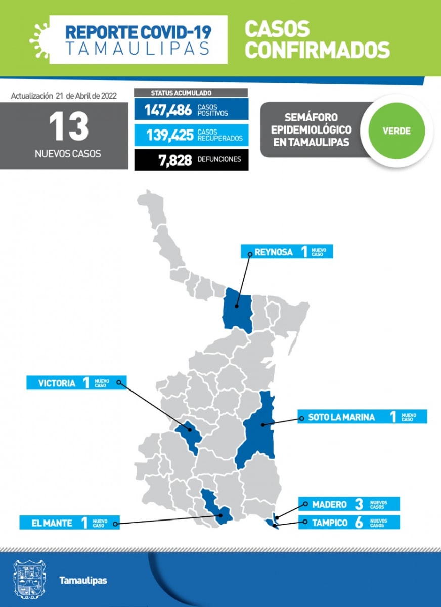 Al actualizar el balance de la pandemia, la dependencia informó que durante la jornada de hoy no se registraron defunciones, sin embargo, se confirmaron 13 nuevos casos, por lo que pidió atender en todo momento medidas como el uso del cubrebocas en los espacios que así sea requerido, la higiene de manos y la sana distancia.