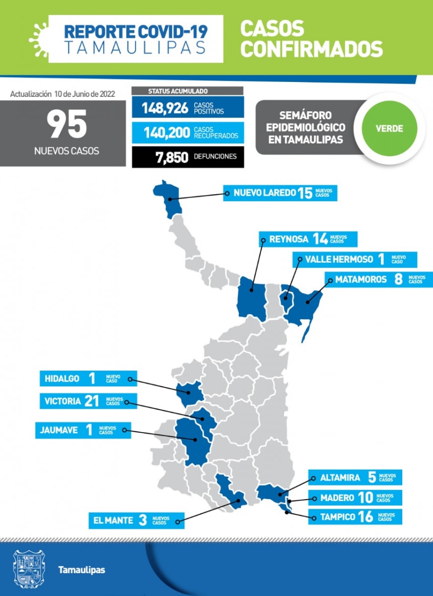 CIUDAD VICTORIA, TAMAULIPAS.- Tamaulipas concluyó una nueva jornada sin fallecimientos asociados a COVID-19, sin embargo, “no es momento de bajar la guardia ni relajar las medidas de prevención ya conocidas para disminuir el riesgo de un rebrote de la enfermedad”, aseguró la secretaria de Salud, Gloria Molina Gamboa.