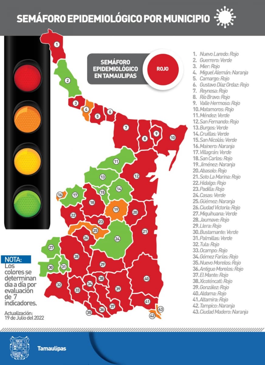 Advirtió que Tamaulipas se encuentra en semáforo epidemiológico color rojo y que el riesgo de contagio es elevado, por lo que insistió evitar salidas no esenciales, proteger a los más vulnerables y mantener el control de enfermedades como obesidad, hipertensión o diabetes.