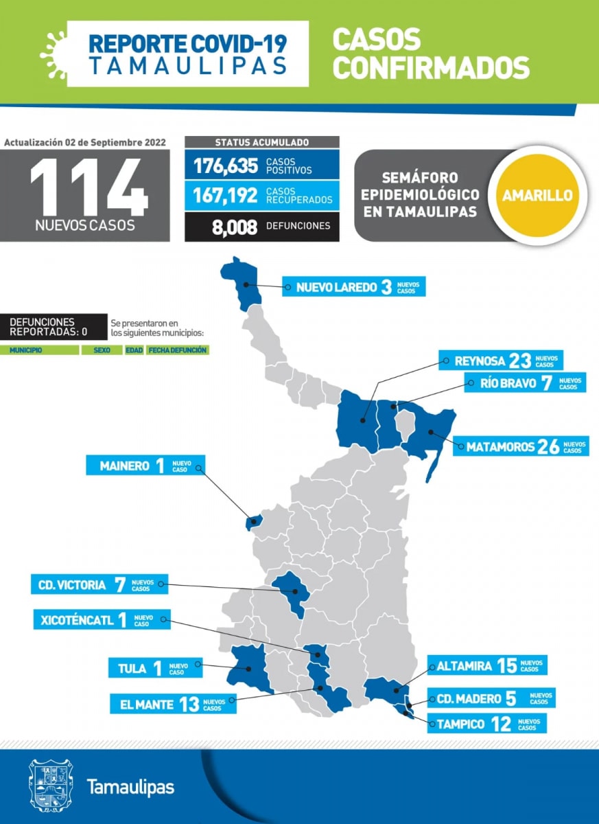 Al presentar el estado actual de la pandemia, la titular de la SST confirmó 114 nuevos casos y aunque la jornada concluyó sin defunciones, pidió atender en todo momento y lugar las recomendaciones emitidas por el gobierno de Francisco García Cabeza de Vaca para limitar daños a la salud.