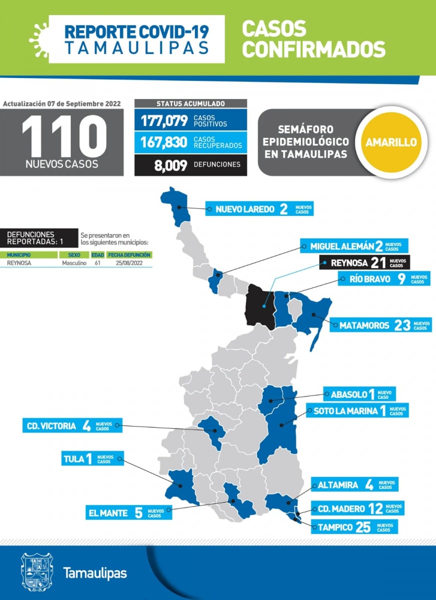 CIUDAD VICTORIA, TAMAULIPAS.- Luego de confirmar 110 nuevos casos y el fallecimiento de un masculino de 61 años de edad por complicaciones graves de COVID-19, la secretaria de Salud de Tamaulipas, Gloria Molina Gamboa hizo un llamado urgente para no relajar las medidas de prevención, ya que la emergencia sanitaria aún no termina.
