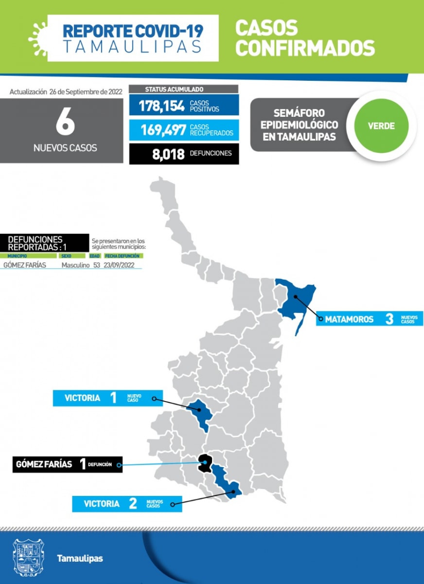 CIUDAD VICTORIA, TAMAULIPAS.- Luego de confirmar 6 nuevos casos y el fallecimiento de un masculino de 53 años de edad por complicaciones graves de COVID-19, la secretaria de Salud de Tamaulipas, Gloria Molina Gamboa insistió en no bajar la guardia ya que la pandemia no ha terminado.