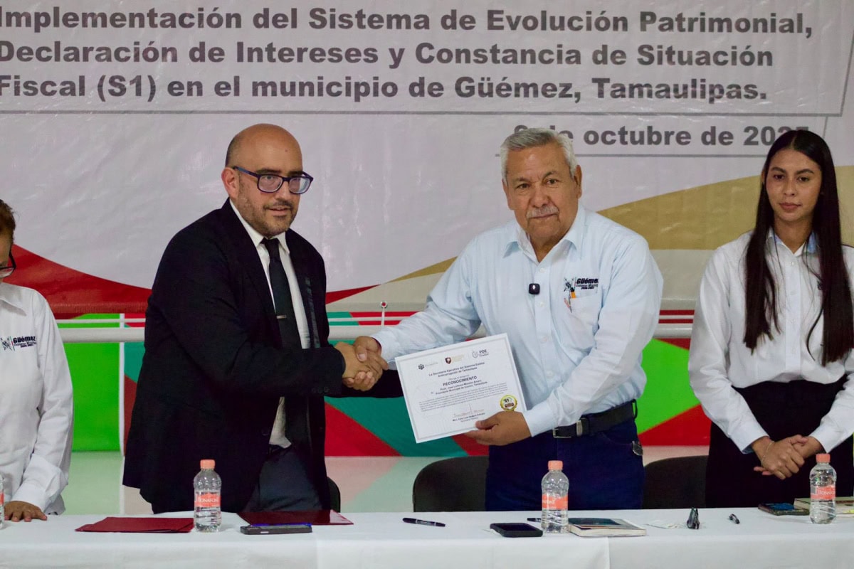La Secretaría Ejecutiva del Sistema Estatal Anticorrupción, presidida por el Maestro Félix Luis Velasco Arévalo, Secretario Técnico encabezó la implementación del Sistema de Evolución Patrimonial, Declaración de Intereses y Constancia de Situación Fiscal (S1) en el municipio de Güémez, integrado en la Plataforma Digital Estatal Tamaulipas. Este sistema, parte de la Plataforma Digital Nacional