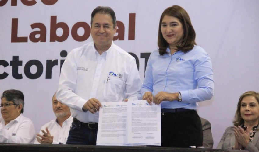 En la Feria de Empleo de Movilidad Laboral, la Secretaría del Trabajo mediante el Servicio Nacional de Empleo Tamaulipas, firmó convenios con la Secretaría de Educación, Salud y Bienestar Social, para ofrecer servicios de manera integral a los trabajadores que sean contratados por las empresas.