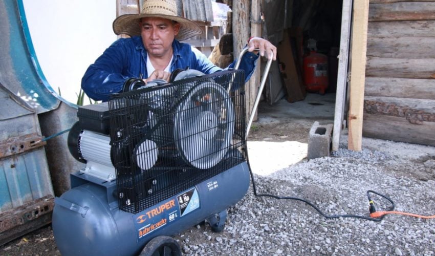 Tal es el caso de Marcos Ibarra Maldonado, quien cuenta con su taller de hojalatería y pintura; “Taller Ibarra”, recibió del gobierno un compresor, una máquina pulidora, un esmeril, una lijadora, una pistola de calor y un taladro roto martillo.