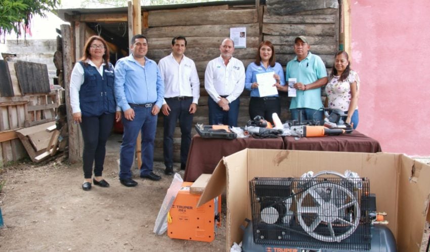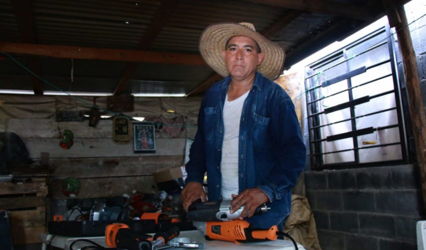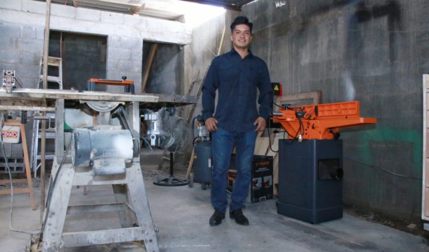 Otro caso es el de Plinio Enríquez Rojas, de oficio carpintero, presentó su iniciativa “Taller de carpintería, Enríquez Victoria” y le fue entregado un cepillo eléctrico, una canteadora y un roto martillo, para trabajar la madera.