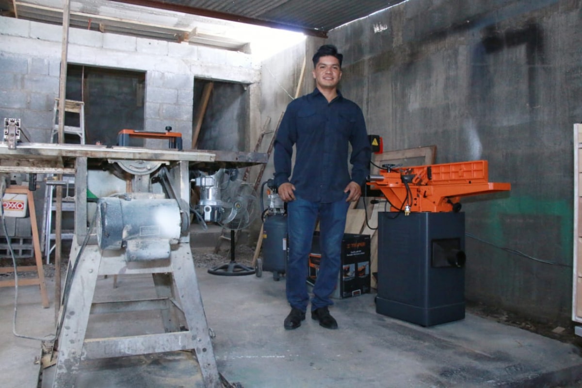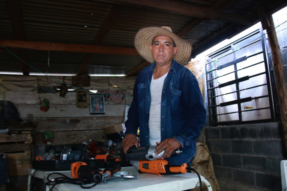 Otro caso es el de Plinio Enríquez Rojas, de oficio carpintero, presentó su iniciativa “Taller de carpintería, Enríquez Victoria” y le fue entregado un cepillo eléctrico, una canteadora y un roto martillo, para trabajar la madera.