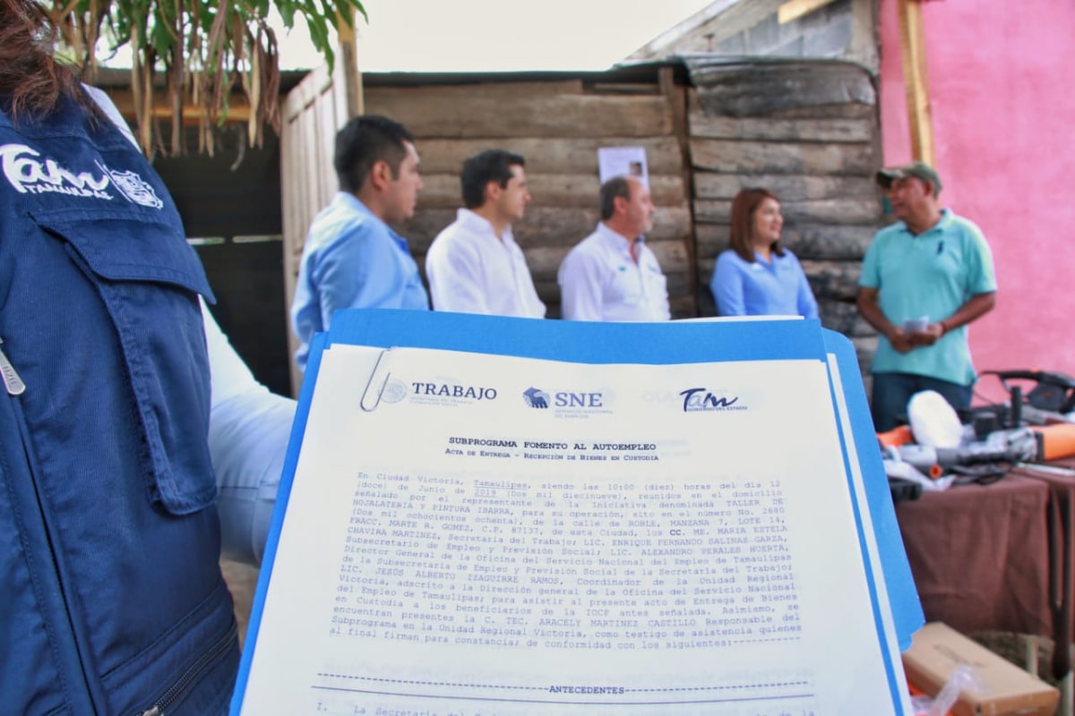 Ciudad Victoria, Tamaulipas.- El Gobierno del Estado mantiene su estrategia de apoyo a los tamaulipecos, quienes buscan emprender un negocio por cuenta propia, entregando herramienta o equipo de trabajo para su desarrollo laboral.