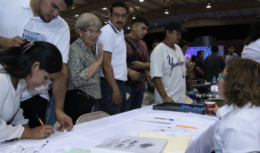 En la Feria de Empleo, realizada en el Centro de Convenciones Mundo Nuevo, se reunieron más de 120 empresas, para ofertar 2 mil 994 plazas; 2 mil 481 para operarios, 48 para técnicos, 343 para profesionistas, 25 para el área industrial, 53 para el comercio y 44 para servicios.