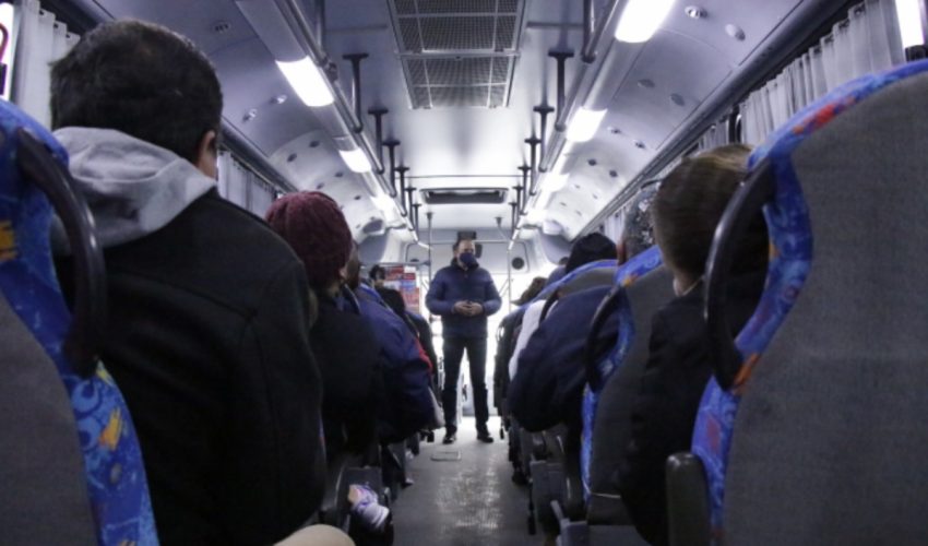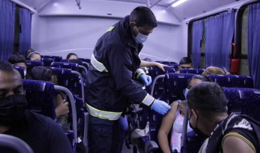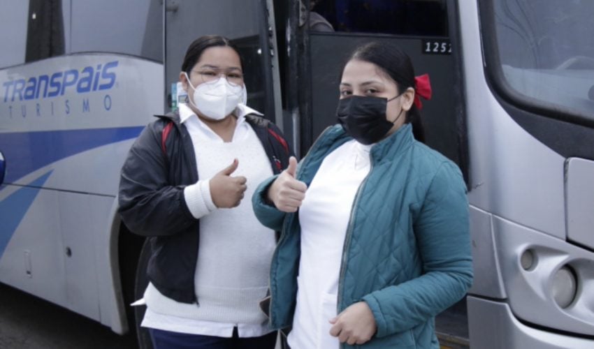 En el Centro de Bienestar y Paz, dio salida a los autobuses que trasladaron a cientos de beneficiarios a Donna, Texas, para la aplicación de la prueba de antígenos Covid-19 y de la vacuna Pfizer.