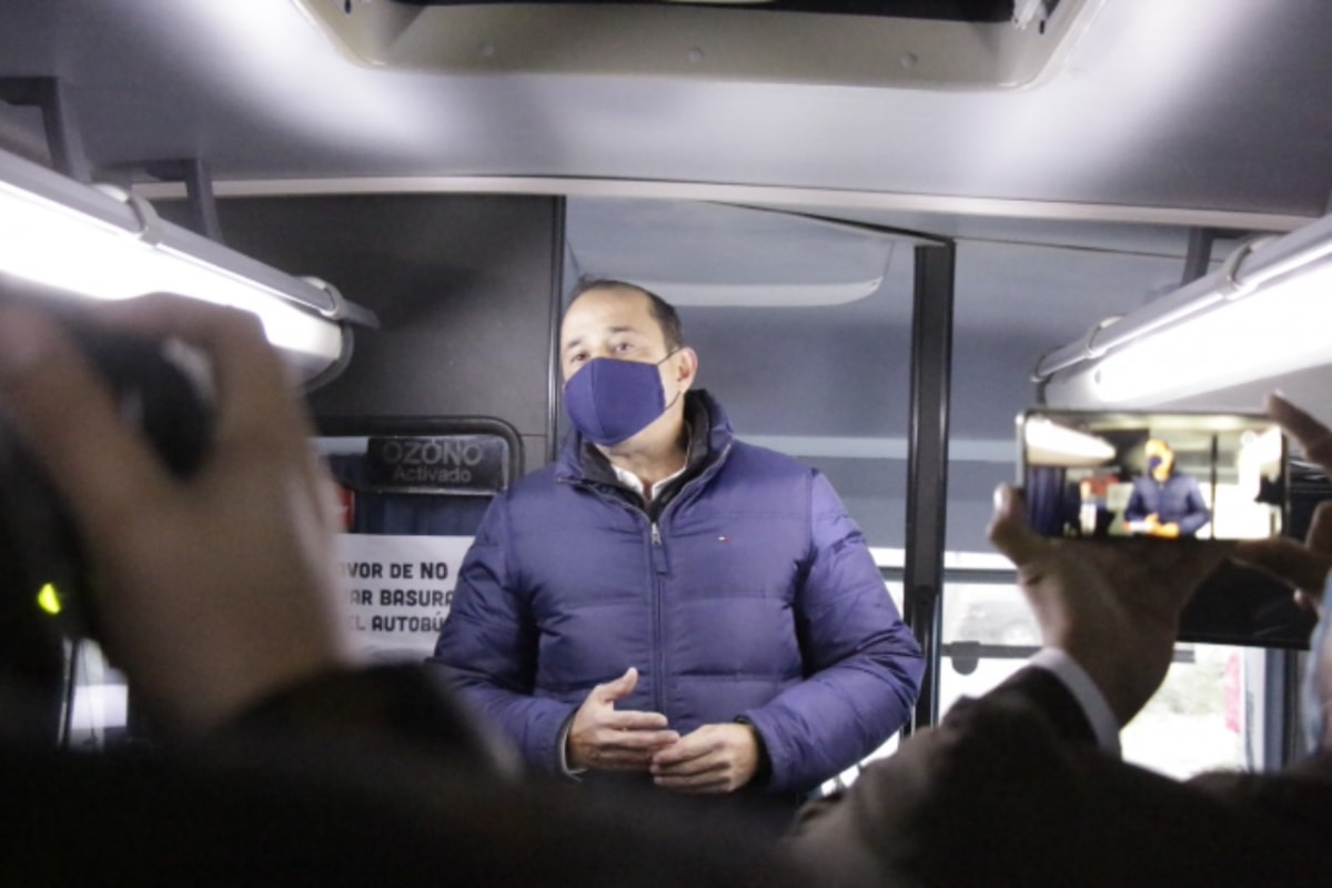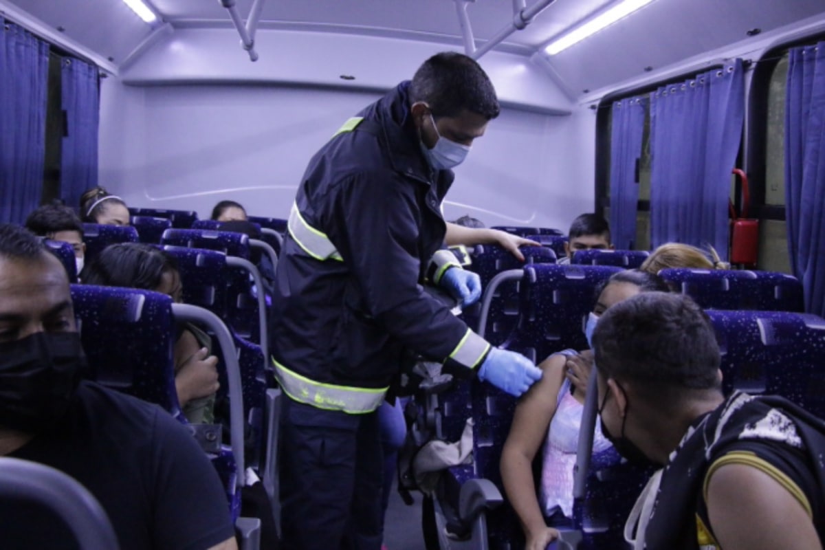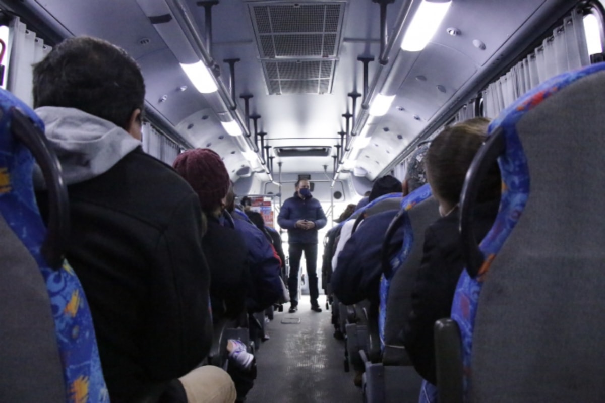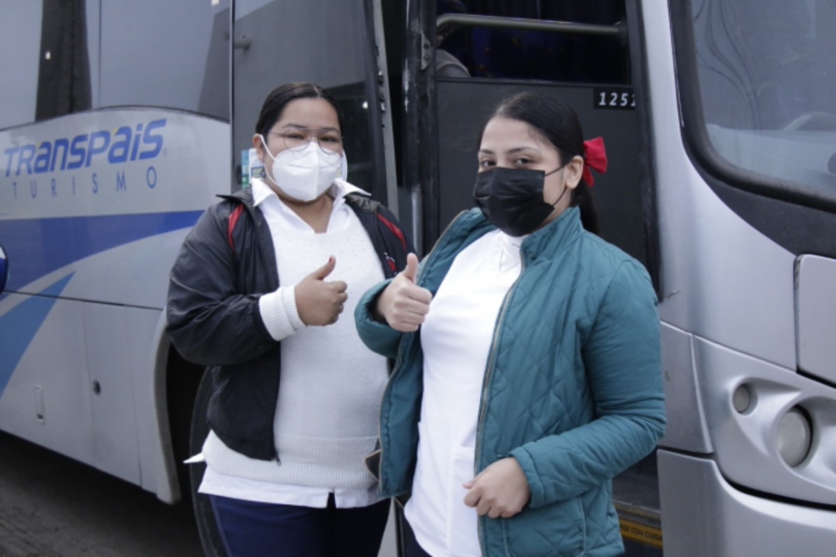 En el Centro de Bienestar y Paz, dio salida a los autobuses que trasladaron a cientos de beneficiarios a Donna, Texas, para la aplicación de la prueba de antígenos Covid-19 y de la vacuna Pfizer.