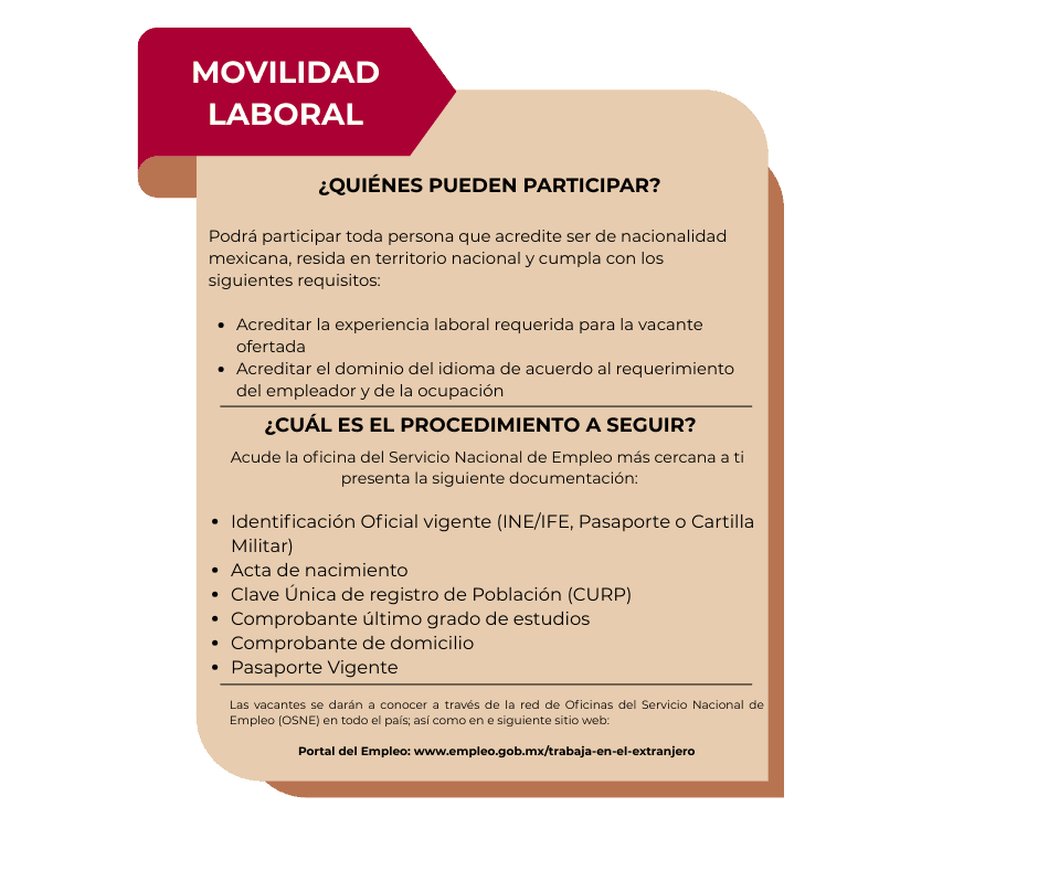 El Mecanismo de Movilidad Laboral es normado y coordinado por los gobiernos federales de México, Canadá, Estados Unidos y Alemania, se comprometen a impulsar en forma ordenada, legal y segura, el flujo de trabajadores temporales mexicanos a Canadá, Estados Unidos y Alemania.