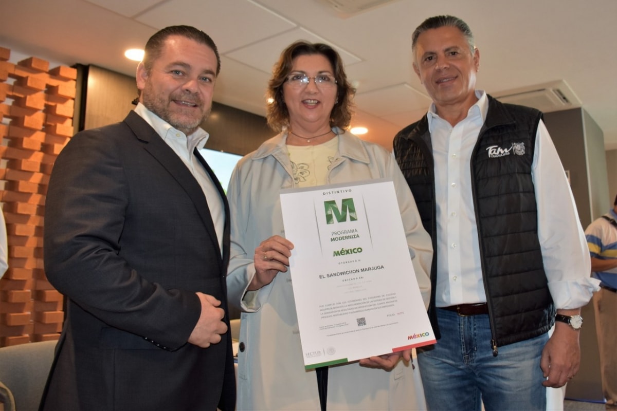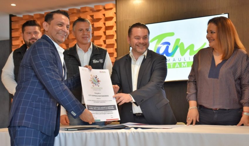 También se reconoció a representante de hoteles en Tamaulipas que obtuvieron su certificado por haber cursado el taller y unirse al “Código de conducta Nacional para la protección de las niñas, niños y adolescentes en el sector de los viajes y el turismo”. En la parte final fue entregado el distintivo Moderniza, máximo reconocimiento que otorga la Secretaría de Turismo a las empresas que implementaron de manera exitosa la adopción de mejores prácticas.