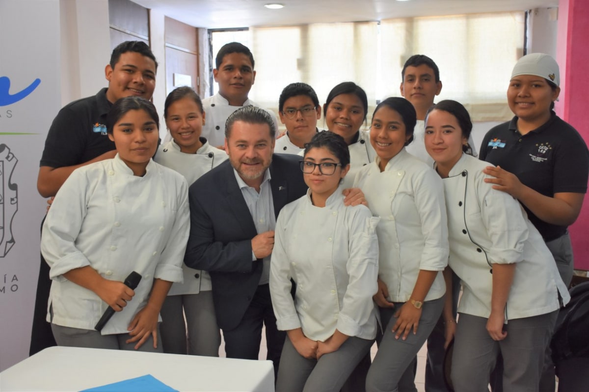 Previo a la firma de este trascendental acuerdo, Olivera Rocha, dictó la conferencia “Política Gastronómica del estado de Tamaulipas” a jóvenes estudiantes de las especialidades de Servicios de Hospedaje, Bebidas y Alimentos.