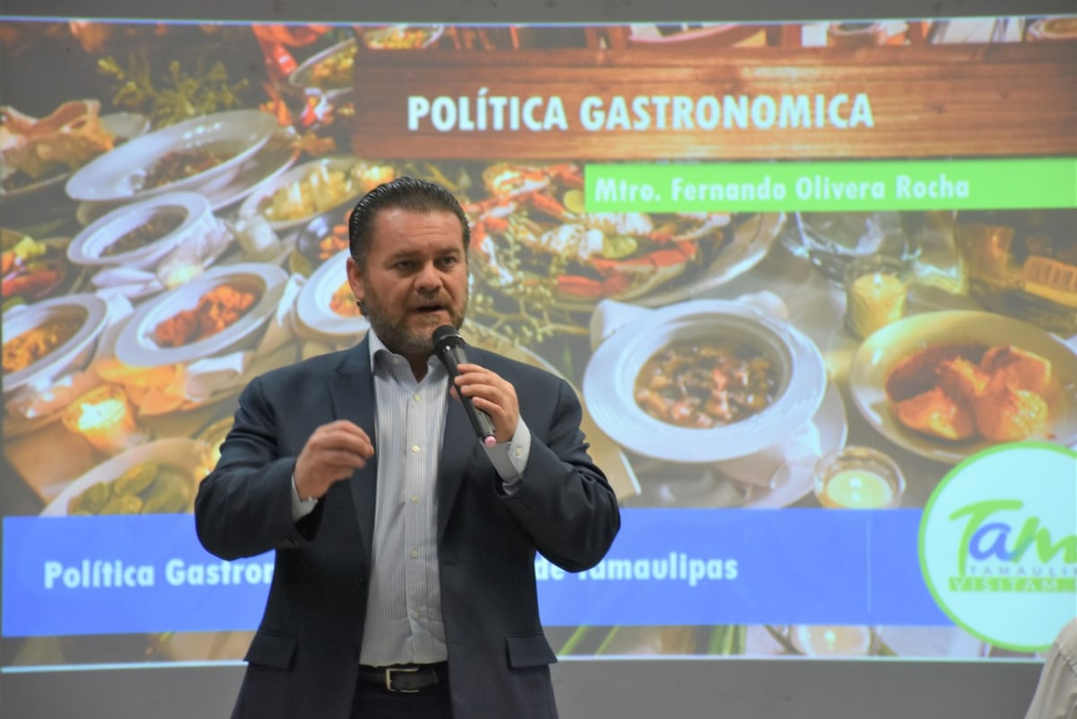 - Fernando Olivera Rocha impartió la conferencia “Política Gastronómica del estado de Tamaulipas”.