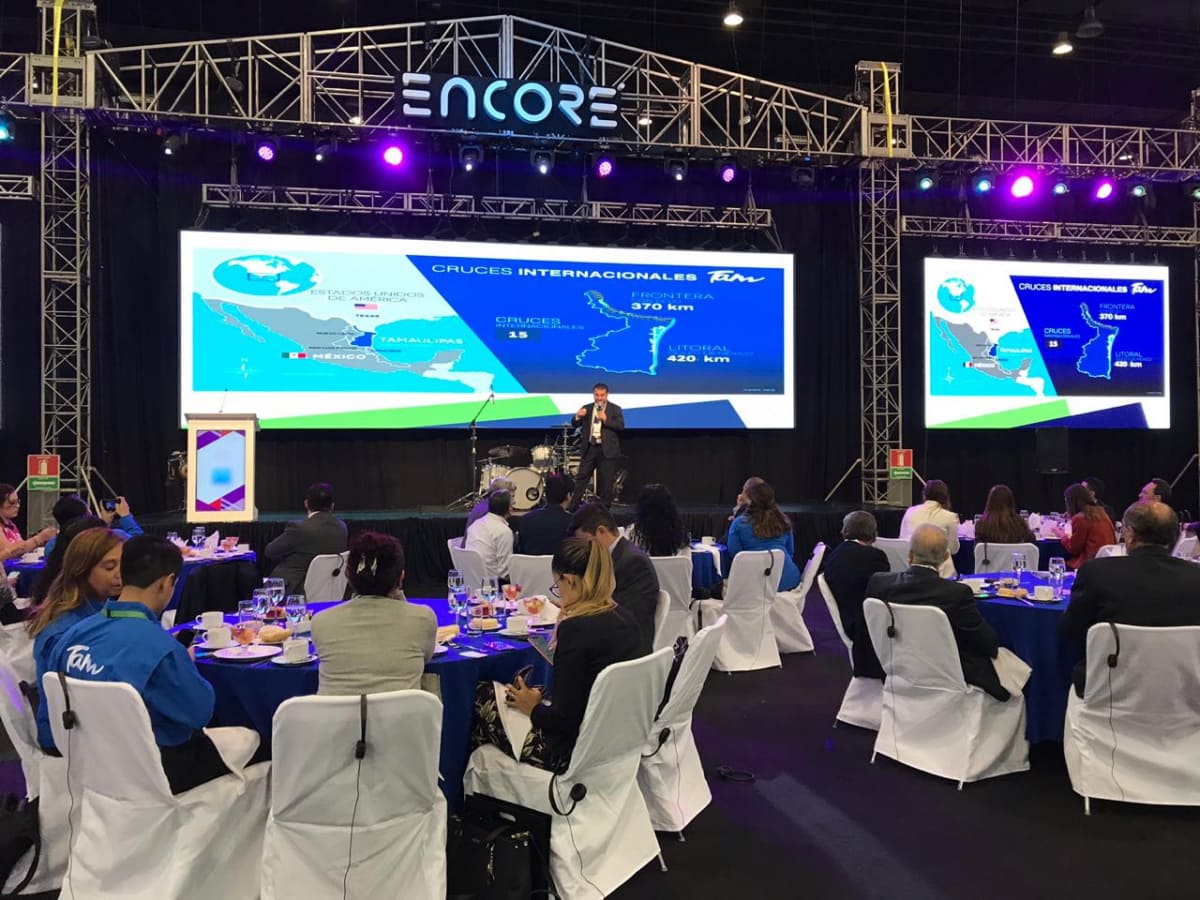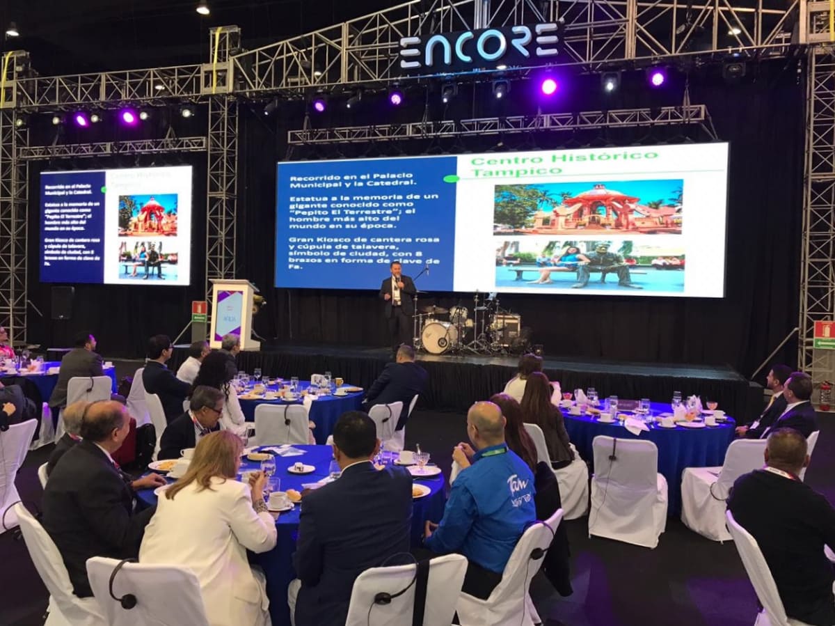 En su exposición, el titular de turismo tamaulipeco compartió las abundantes fortalezas que el estado posee, abordando temas como los diversos segmentos turísticos, la conectividad terrestre y aérea, la capacidad hotelera existente, los espacios destinados para convenciones instalados en Ciudad Victoria, Nuevo Laredo, Reynosa y Tampico, concluyendo su participación invitando a los presentes a visitar y realizar sus eventos en Tamaulipas.