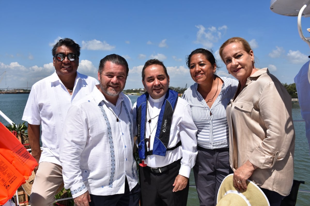 Más adelante, al comenzar la peregrinación en tierra, los invitados y miles de fieles se encaminaron a la Capilla Cristo del Mar, para concluir con una magna celebración eucarística donde se encuentra el monumento a la Virgen del Carmen, en la colonia de la Barra.