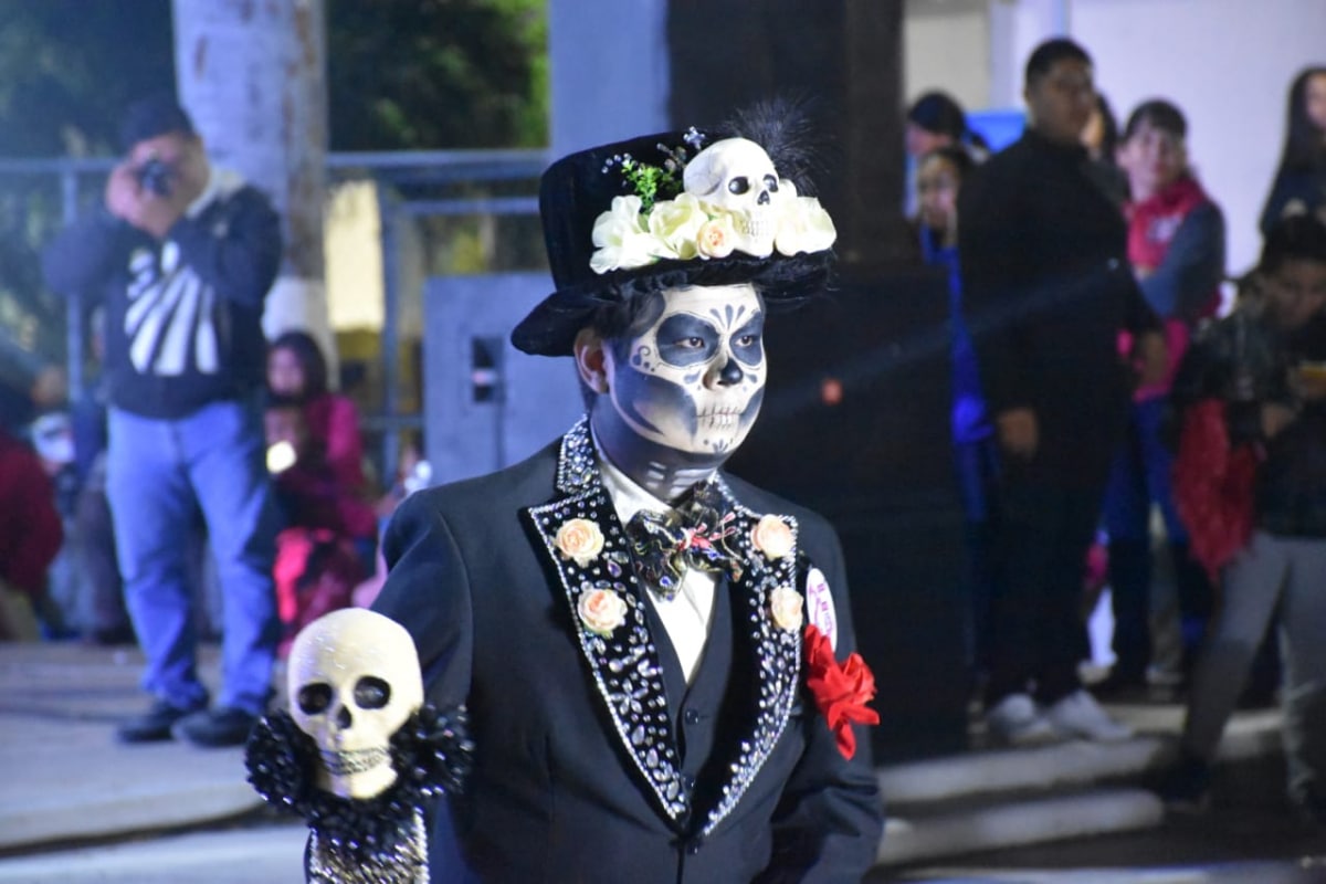 Alrededor de 30 participantes desfilaron caracterizados de catrinas, catrines, deidades mexicas o personajes relacionados con esta celebración, ganándose el aplauso de las familias asistentes.