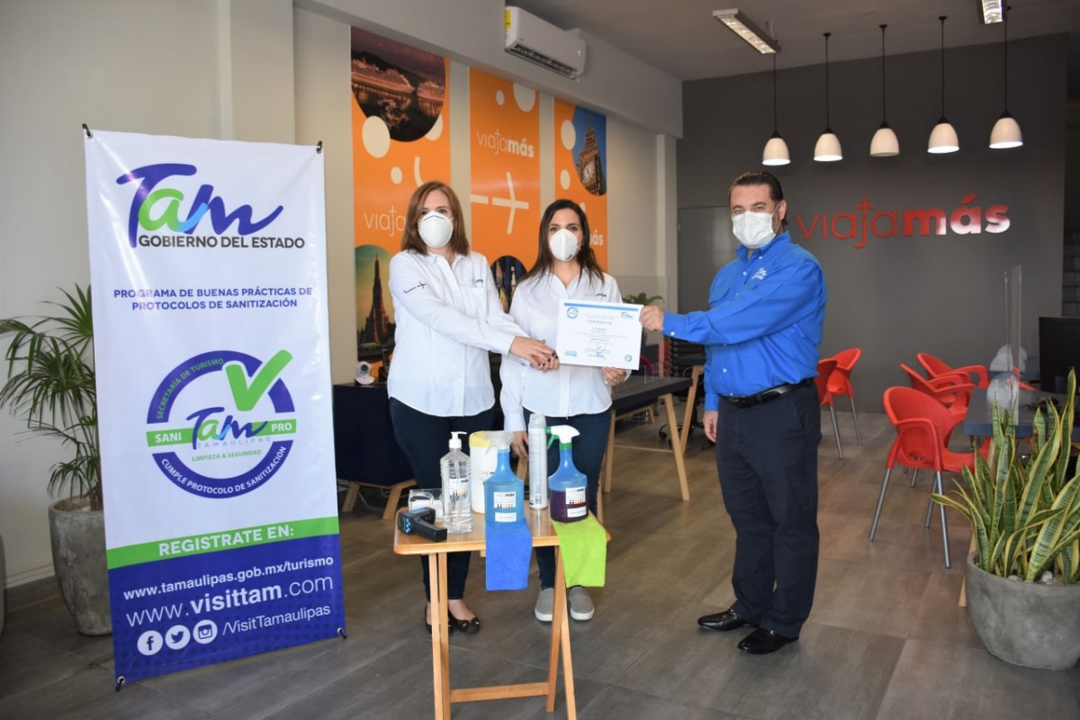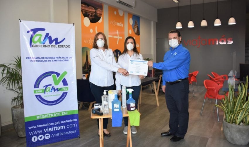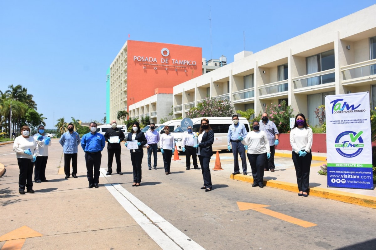 Las empresas que recibieron las primeras constancias “SaniTam Pro” en el estado fueron los hoteles Gamma Tampico, Posada de Tampico, HS Hotsson Tampico y Río Vista Inn. También fueron distinguidos la agencia Viaja Más y el restaurante Jardín Corona, formando parte de las 76 empresas turísticas en el estado, que ya han alcanzado este reconocimiento de buenas prácticas de higiene y salud.