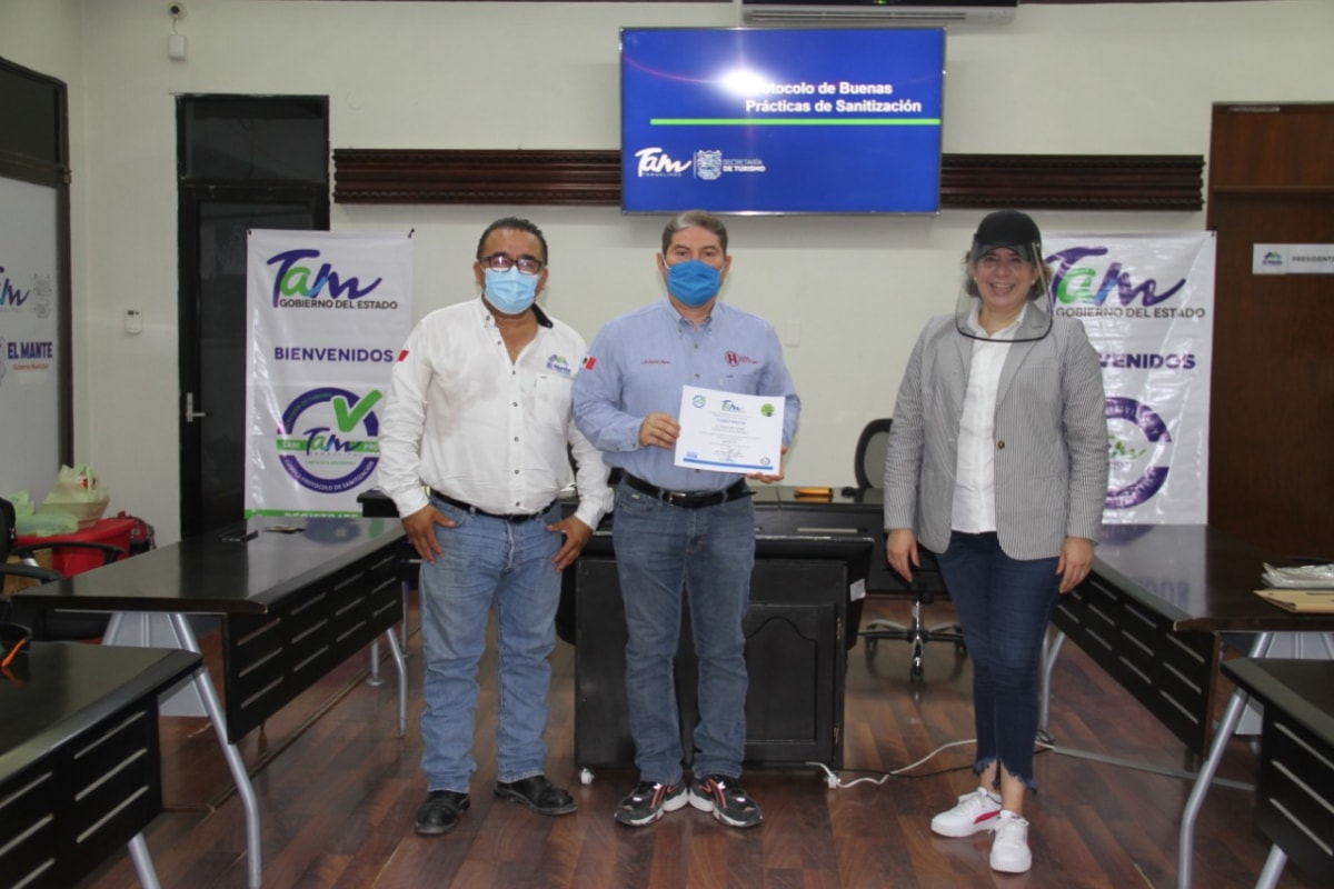 Ciudad Victoria, Tamaulipas.- Trabajando en la difusión de los nuevos programas, constancias y protocolos de salud que plantean la nueva realidad, el Gobierno de Tamaulipas, a través de la Secretaría de Turismo estatal, realizó jornadas informativas del programa “SaniTam Pro”, en los municipios de El Mante, Soto la Marina y Jaumave.