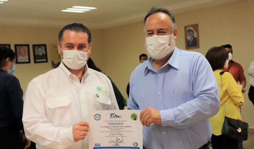 Ciudad Victoria, Tamaulipas.- En gira de trabajo por la zona del altiplano tamaulipeco, el secretario de Turismo de Tamaulipas, Fernando Olivera Rocha, entregó nuevas constancias de buenas prácticas en limpieza “SaniTam Pro”, a empresarios del Pueblo Mágico de Tula y del municipio de Jaumave.