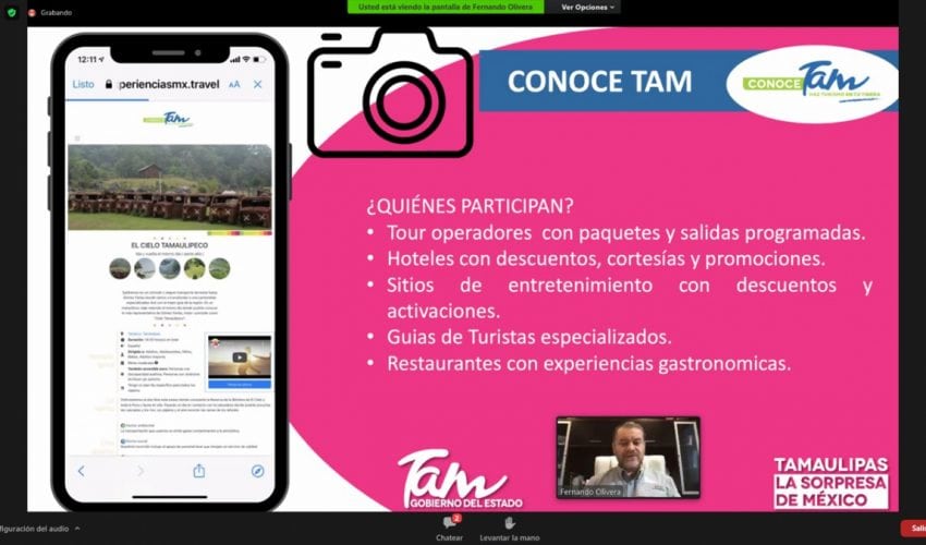 Ciudad Victoria, Tamaulipas.- La manera de conocer los destinos y vivir las experiencias turísticas de Tamaulipas se encuentran a un click y cerrar de ojos, esto gracias a la nueva plataforma “Conoce Tam”, que fue presentada en conferencia de prensa virtual por el secretario de Turismo estatal, Fernando Olivera Rocha.