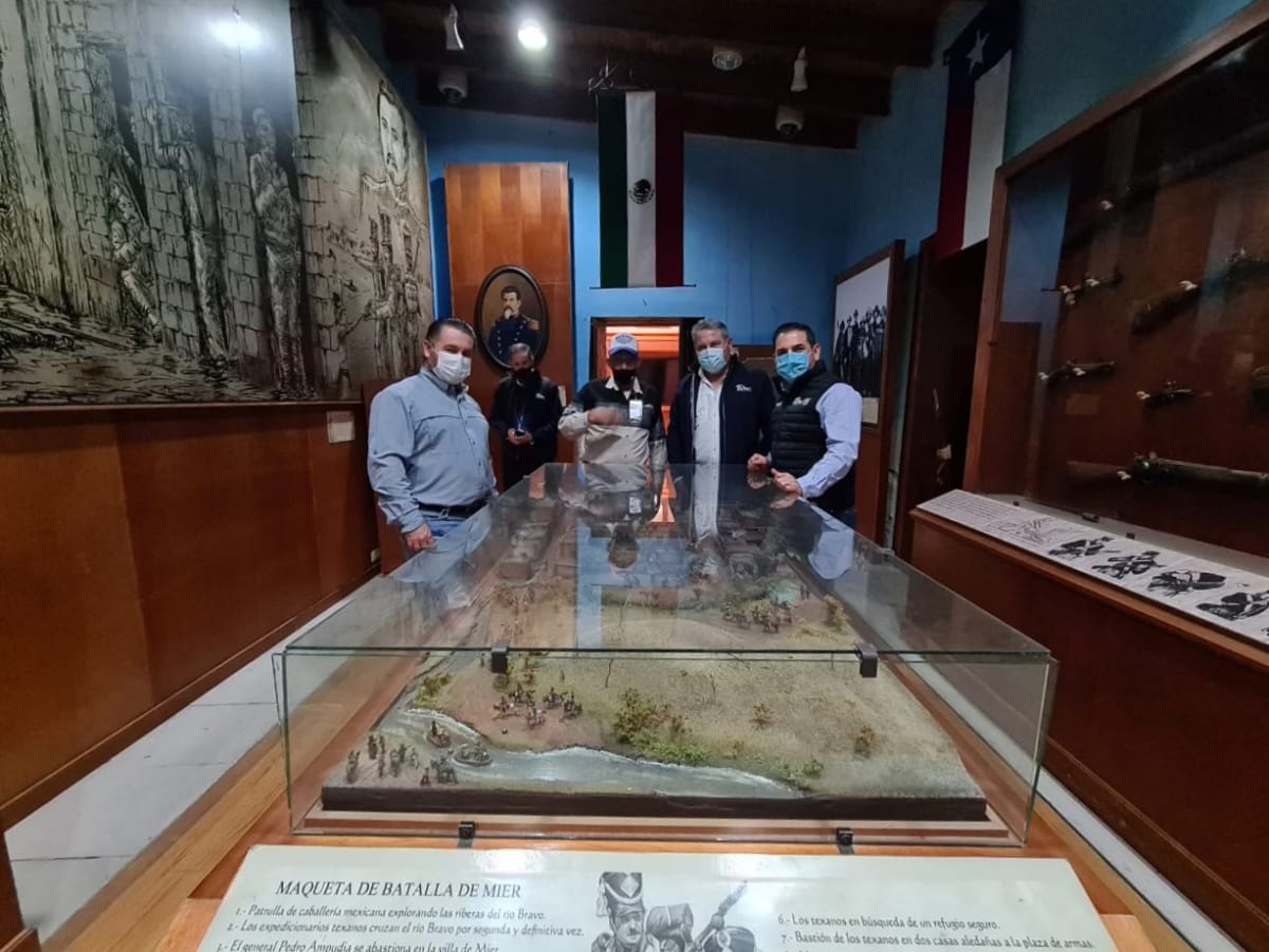 Durante su visita al Pueblo Mágico de Mier, el titular del Turismo en Tamaulipas, fue acompañado por el alcalde, Roberto Gustavo González Hinojosa, representantes de su cabildo, el subsecretario de Gestión de Turismo de Salud y Asuntos Binacionales. José Luis Martínez Portilla, promotores turísticos y miembros del Comité Ciudadano.