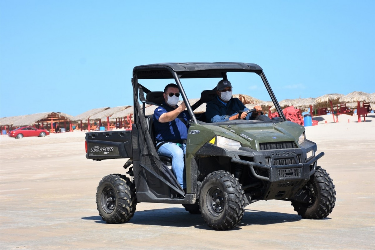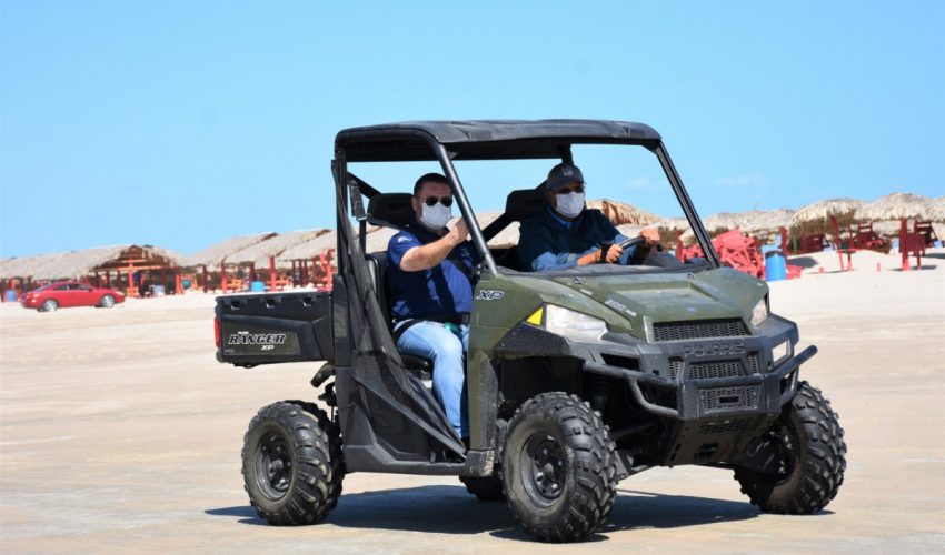 Ciudad Madero, Tamaulipas.- Destacando el trabajo coordinado que existe entre los 3 niveles de gobierno en Playa Miramar, donde las diferentes dependencias, continúan trabajando con el objetivo de resguardar la salud de todos los visitantes y turistas, el secretario de Turismo de Tamaulipas, Fernando Olivera Rocha, realizó un recorrido de supervisión, dando continuidad así al operativo de filtros y accesos.