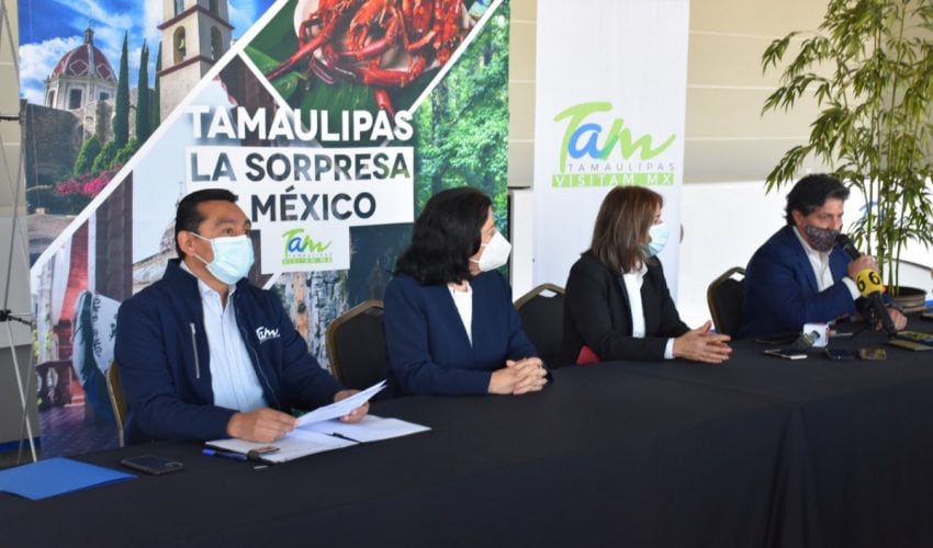 En la presentación de este museo itinerante participaron también Elvia Holguera Altamirano, secretaria de Turismo de Tampico, María del Rosario González Flores, directora de Expo Tampico y Antonio Morales Martínez, director comercial del Tour “Tierra de Dinosaurios”.